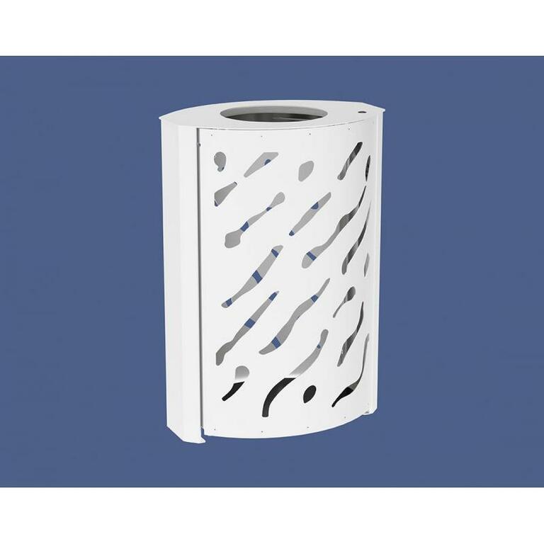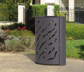 Ein Abfallkorb mit großem Fassungsvermögen und frontseitiger Tür zur Erleichterung des Einsetzens und der Entnahme der Müllsäcke. Das moderne Design wird in zahlreichen Versionen angeboten.