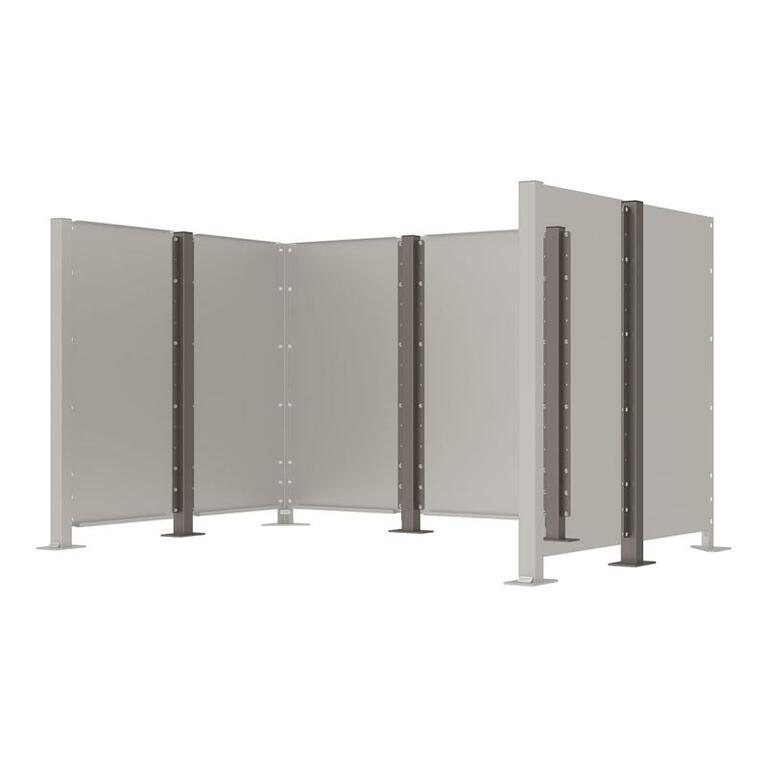 Ein rundum modulares System, das sich effektiv an Ihre Bedürfnisse anpassen lässt. Wählen Sie zur Erstellung Ihrer „maßgeschneiderten“ Umhausung die Anzahl der erforderlichen Pfosten und Verkleidungen.