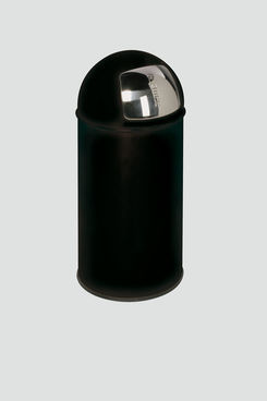 Abfallsammler aus beschichtetem Stahl mit Einwurfklappe aus Edelstahl. Ausgerüstet mit verzinktem Inneneinsatz und bodenschonendem Kantenschutz.