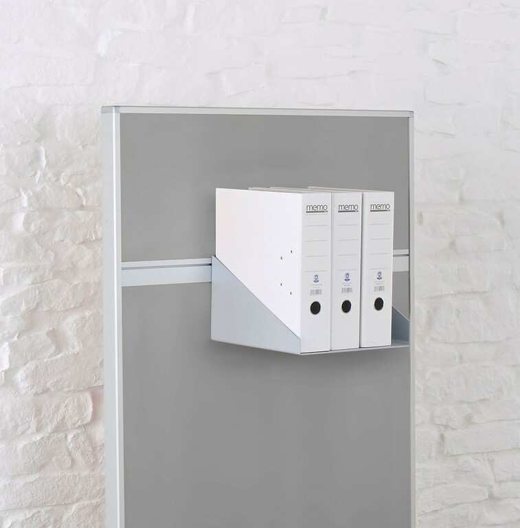 Das Ablageboard eignet sich zum Beispiel für Ordner. Es wird in eine Funktionstraverse eingehängt.