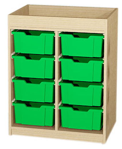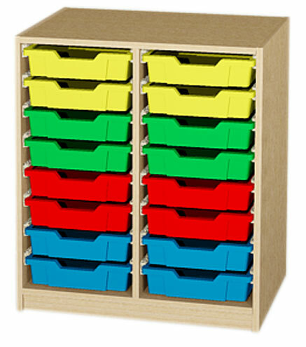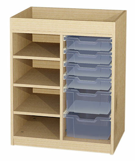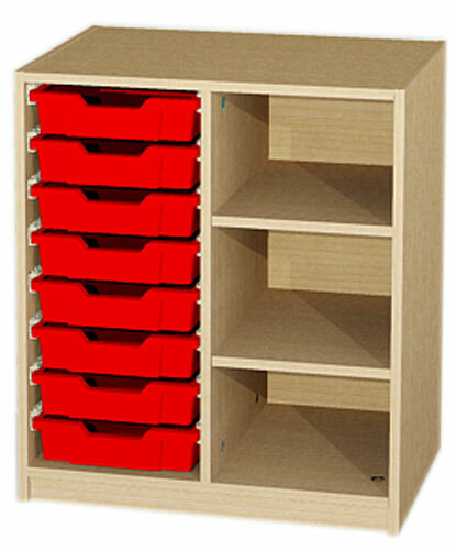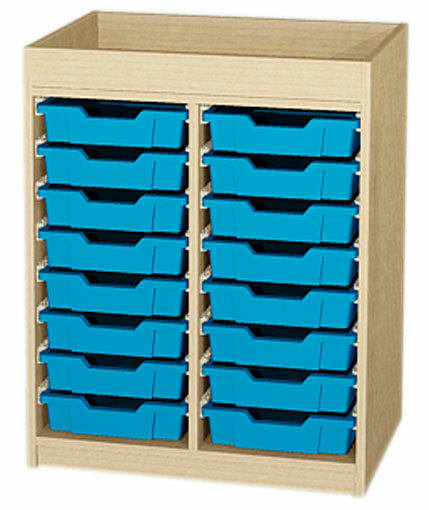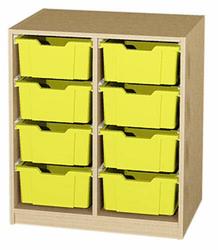 Diese Materialcontainer finden ihren Einsatz als Kindergartenschrank oder als Materialschrank in der Schule. Die Aufkantung ist die ideale Ablage für Bücher oder Spiele.