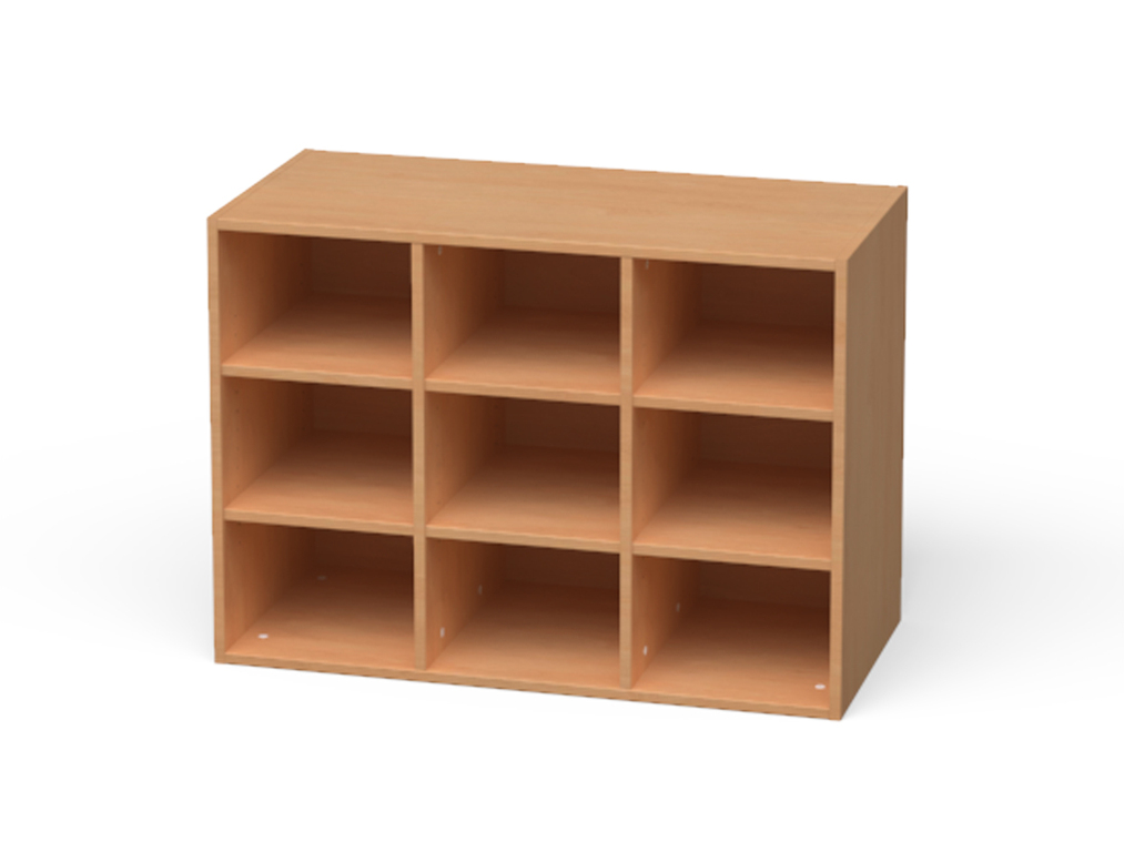 | 3 Fachböden | 8 flache Kunststoffkästen | 3 Fachböden |