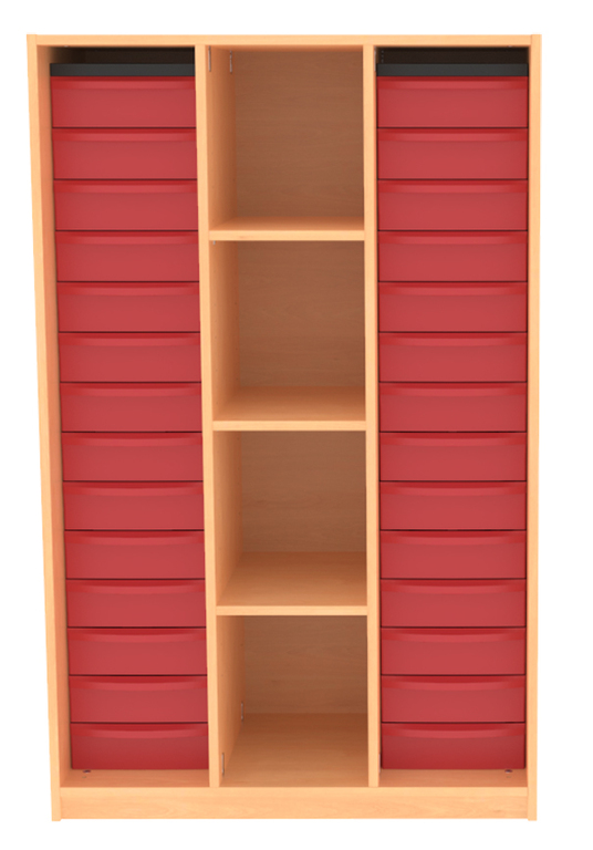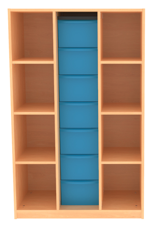 | Materialschrank als offenes Regal, 152H cm | Materialschrank mit 6 hohen Schüben, Materialschrank mit 12 flachen Schüben, Materialschrank mit 21 hohen Schüben, Materialschrank mit 42 flachen Schüben |