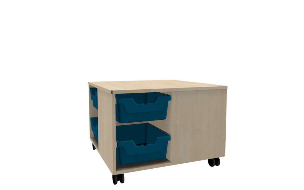 Unsere Spielinsel die perfekte Lösung um alle Spielsachen beisammen zu halten. Gleichzeitig ist sie mit vier Rollen (2 davon feststellbar) mobil einsetzbar und kann beliebig verschoben werden. Die Arbeitsfläche dient dabei als Spieloberfläche auf der gebastelt, gemalt, oder gespielt werden kann.