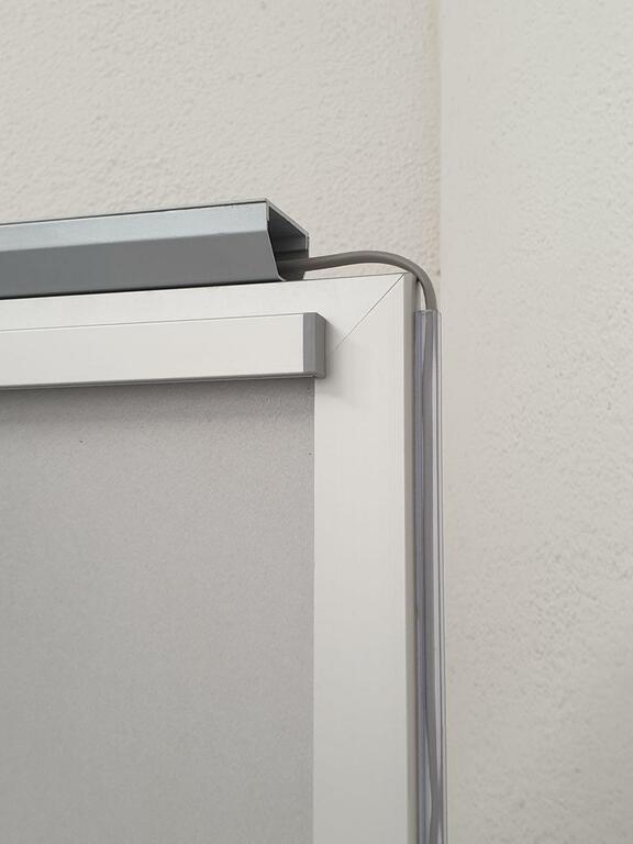 Der Kabelkanal wird am oberen Rahmen des Galeriewandmoduls SCREEN-ART angebracht und ermöglicht das Verbergen des Kabels der LED-Leuchte.
