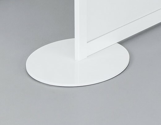 Die Metallfußplatten SCREEN-ART sorgen für einen sicheren Stand von einzelnen Galeriewandmodulen oder Kombinationen aus mehreren Galeriewandmodulen.