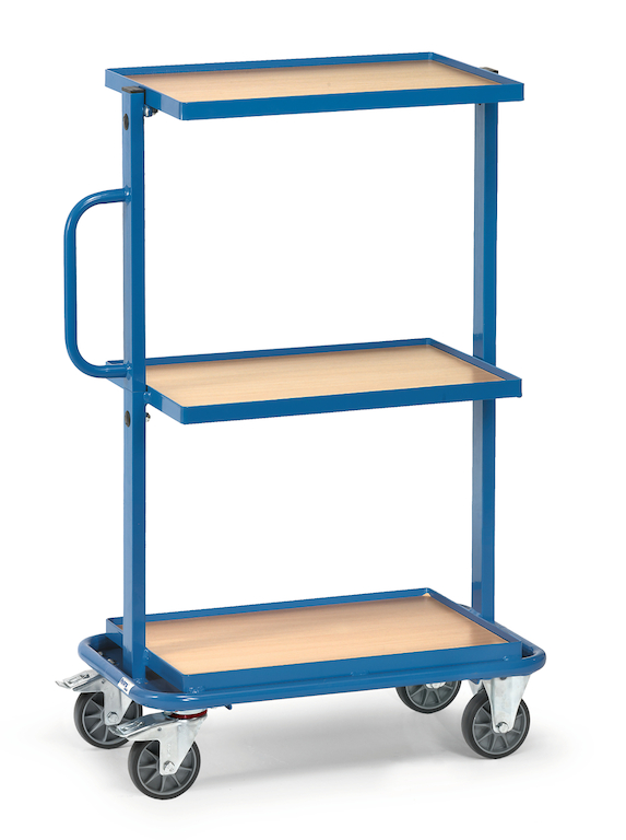 Der Beistellwagen aus Stahlrohr und Profilstahl-Konstruktion mit hochwertiger Pulverbeschichtung ist ideal für den Transport von Eurokästen oder als Beistellwagen für Kleinteile in Produktion und Montage geeignet.