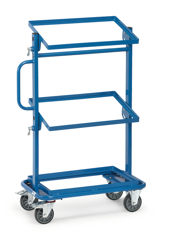 Der Beistellwagen aus Stahlrohr und Profilstahl-Konstruktion mit hochwertiger Pulverbeschichtung ist ideal für den Transport von Eurokästen oder als Beistellwagen für Kleinteile in Produktion und Montage geeignet.