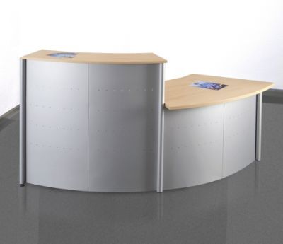 Die hochwertige kompakte Empfangstheke im modernen Design besteht aus einer Theke, einem Tisch und Seitenblenden. Das Thekenelement kann mit Prospektfächern und Plakattaschen bestückt werden.