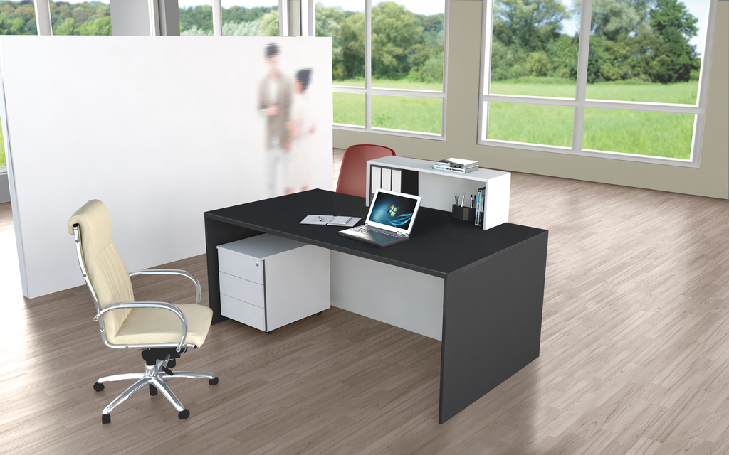 - Arbeitsplatte und Aufsatzplatte aus Holz mit stoßfestem ABS-Umleimer.