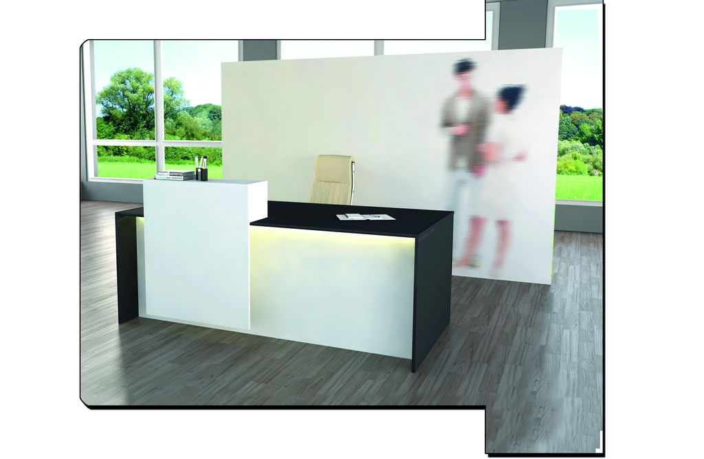 Die Theke Palma ist eine elegante und moderne Lösung für Ihren Empfangsbereich oder Ihre Verkaufsfläche. Die Tischplatte besteht aus melaminharzbeschichteter Spanplatte mit einer stoßfesten ABS-Kante, was eine robuste und strapazierfähige Oberfläche gewährleistet. Im Lieferumfang enthalten ist ein Kabeldurchlass für eine saubere Kabelführung und eine aufgeräumte Arbeitsumgebung. Zusätzlich verfügt die Theke über eine LED-Beleuchtung an der Front, die für eine attraktive Präsentation Ihrer Produkte oder Dienstleistungen sorgt und gleichzeitig eine angenehme Atmosphäre schafft. Mit ihrem modernen Design und ihrer funktionalen Ausstattung ist die Theke Palma eine ideale Wahl für den professionellen Einsatz in verschiedenen Geschäftsumgebungen.