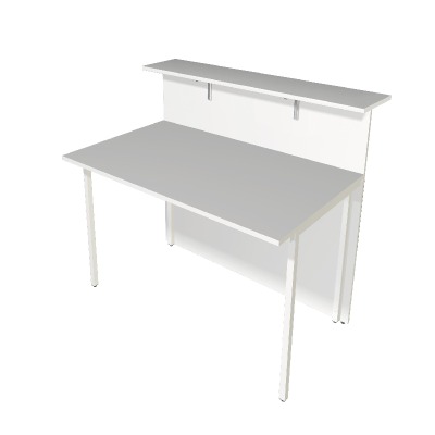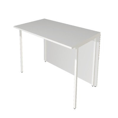 - Tischplatten, Arbeitsplatten und Ablagen aus Holz (E1-Gütespan, melaminharzbeschichtet im Dekor Weiß), mit stoßfester 2 mm starker ABS-Kante. Plattenstärke 19 mm.