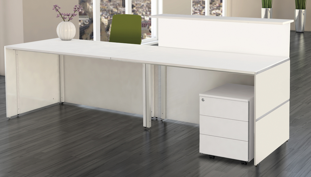 Die Theke ist in drei attraktiven Dekorvarianten erhältlich. Als Zusatzausstattung gibt es eine LED-Leuchtleiste und eine Taschenablage für die Empfangstheke. Durch Rollcontainer kann der Arbeitsplatz noch funktioneller gestaltet werden.