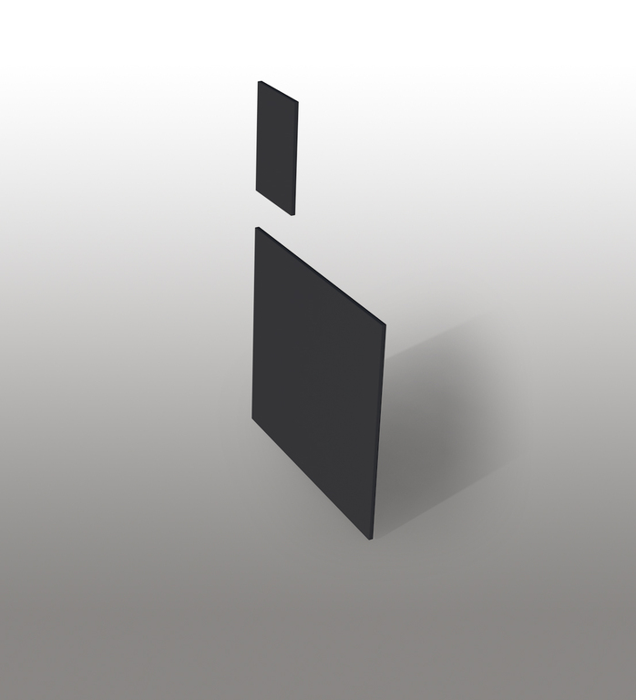 - Thekenplatte Stärke 19 mm und Ablageplatte Stärke 16 mm aus Holz (E1 Gütespan, melaminharzbeschichtet im Dekor Anthrazit). 2 mm ABS-Kanten.