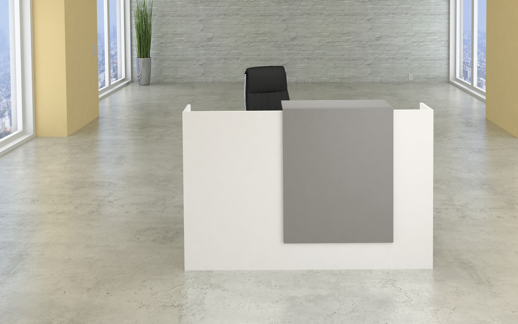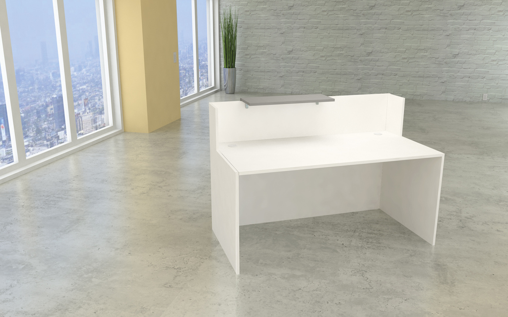 Die Sydney Kompakt-Theke ist eine solide Holzkonstruktion. Die Holzplatten der Theke sind mit Melaminharz beschichtet und mit stoßfesten ABS-Kanten versehen. Die Theke ist in Weiß, der Vorbau in Grafit. Die Gesamthöhe der Theke beträgt 110 cm, die Arbeitsplatte liegt auf 75 cm Höhe bei einer Tiefe von 80 cm. Für die Kabelführung gibt es 2 Durchlässe in der Tischplatte.