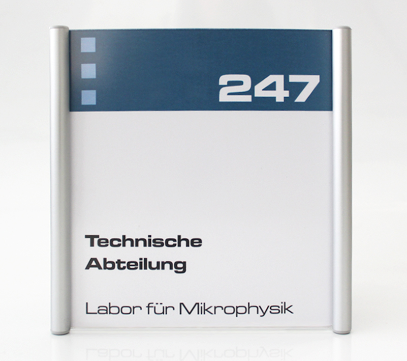 Fahnenschilder sind platzsparend und gut erkennbar. Da sie in den Raum hineinragen, erwecken sie mehr Aufmerksamkeit als herkömmliche Wand- oder Türschilder. Besonders vorteilhaft ist dies in langen Gängen und Korridoren beispielsweise von Behörden und Krankenhäusern.