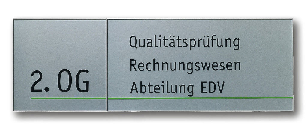 Eine einheitliche und harmonische Gesamtbeschilderung wird in Kombination mit dem Türschild L, Funktionsschild L, Hängeschild L und Wegweiser L erzielt. Der Pylon L ist die ideale Ergänzung für den Außenbereich. Den passenden Bodenständer L, Prospektständer und Thekenaufsteller L finden Sie ebenfalls in unserem Shop.