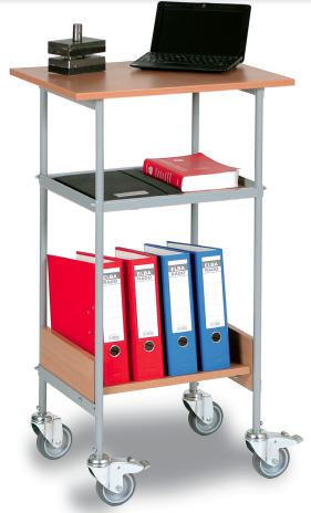 Der ideale Wagen für Lager, Inventur oder Büro. Zerlegte Anlieferung im handlichen Karton. Leichte Selbstmontage. Nach hinten geneigte Ablage zum sicheren Transport der Ordner.