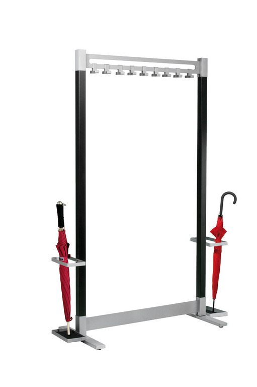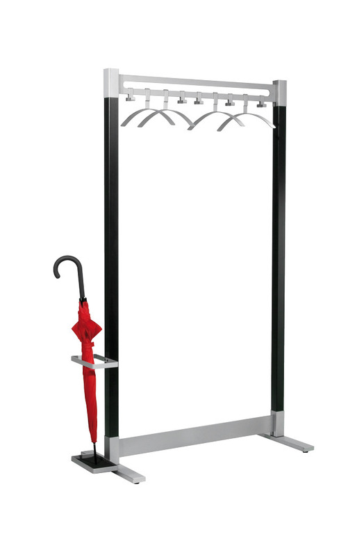 - Ausstattbar mit Haken und/oder Kleiderbügeln sowie rechts, links oder beidseitig mit Schirmhaltergarnitur.