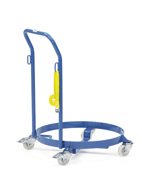 Der Fassroller in sorgfältig geschweißter Flachstahl-Konstruktion mit hochwertiger Pulverbeschichtung eignet sich zum Transport von Stahlblech-Fässern mit 60 und 200 Liter Inhalt. Der Außenring nimmt 200-Liter-Fässer auf, zur Aufnahme von 60-Liter-Fässern sind die Kreuzstreben nach innen durchgekröpft. Ein Rohrschiebebügel mit zwei angeschweißten Ösen und ein Zurrgurt mit Schnellverschluss sind im Lieferumfang enthalten. Die vier Polyamidräder (2 davon mit Feststeller, Naben mit Gleitlager) sind spurlos (nicht kreidend) und daher auch für empfindliche Böden geeignet.