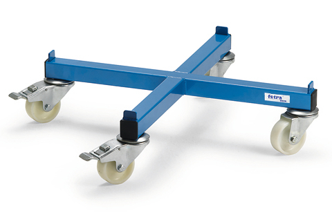 Der pulverbeschichtete Fassroller besteht aus einem geschweißten Kreuz aus Quadrahtrohr mit Abrutschkanten an den Enden. Er eignet sich zum Transport und zur Lagerung von Stahlblech-Fässern mit 200 Liter Inhalt. Die vier Polyamidräder (2 davon mit Feststeller, Naben mit Gleitlager), sind spurlos (nicht kreidend) und daher auch für empfindliche Böden geeignet.