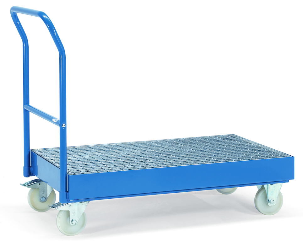 Der Fass-Transportwagen ist in stabiler und sauber verschweißter Stahlkonstruktion mit hochwertiger Pulverbeschichtung gefertigt. Er ist zum Transport von 100- oder 200-Liter-Fässern geeignet. Durch die öldichte, 100 mm hohe Tropfölwanne mit bündig eingelegtem Gitterrost werden Schäden durch Tropföl vermieden. Die Räder aus Polyamid (2 Lenkrollen mit Feststeller, 2 Bockrollen) sind spurlos (nicht kreidend) und weitgehend beständig gegen Feuchtigkeit, Salz, Säuren und Laugen.