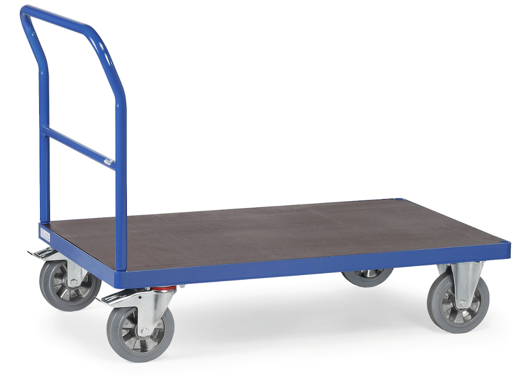 Das stabile, verschweißte und pulverbeschichtete Stahlgestell ist in der eleganten Farbe "ocean" (RAL 5007) kunststoffbeschichtet. Die Plattform verfügt über eine rutschsichere und wasserfeste Oberfläche, die zusätzlichen Schutz und Sicherheit beim Transport bietet.