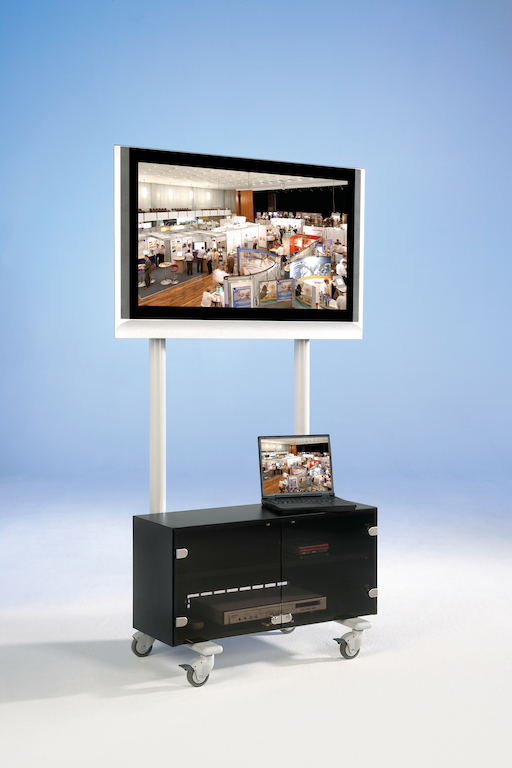 Das Stahlrohrgestell des TV Wagens mit Rack verschiebt den Schwerpunkt des Fernsehers in eine optimale Sicherheitsposition.