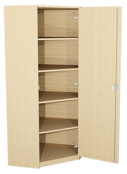Der Eckschrank ist eine praktische Aufbewahrungslösung mit einer Tür, die abschließbar ist und mit einem Dreholive ausgestattet ist, um die Sicherheit des Inhalts zu gewährleisten. Im Inneren des Schranks befinden sich vier Einlegeböden, die eine organisierte Aufbewahrung verschiedener Gegenstände ermöglichen. Diese Bauweise maximiert den Stauraum in einem Eckenbereich und bietet eine effiziente Möglichkeit zur Aufbewahrung von Büchern, Akten, Geschirr oder anderen Gegenständen. Der abschließbare Mechanismus gewährleistet die Sicherheit des Inhalts und macht den Eckschrank ideal für den Einsatz in Büros, Arbeitszimmern oder anderen Räumen, in denen Sicherheit und Organisation wichtig sind.