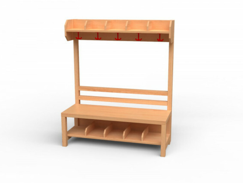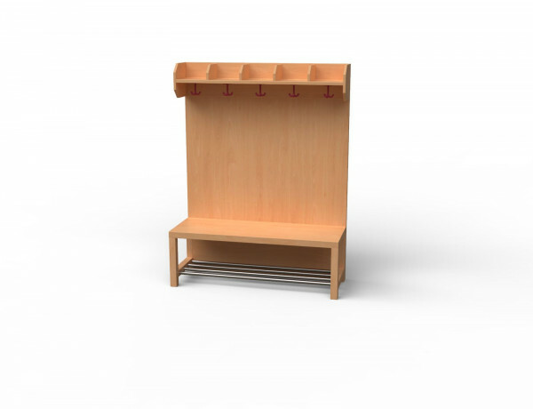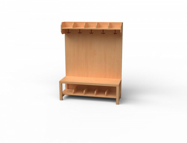 Garderoben-Set 5 Plätze. Stollenbauweise mit offenen Seutenteilen aus Bucke-dekor.
