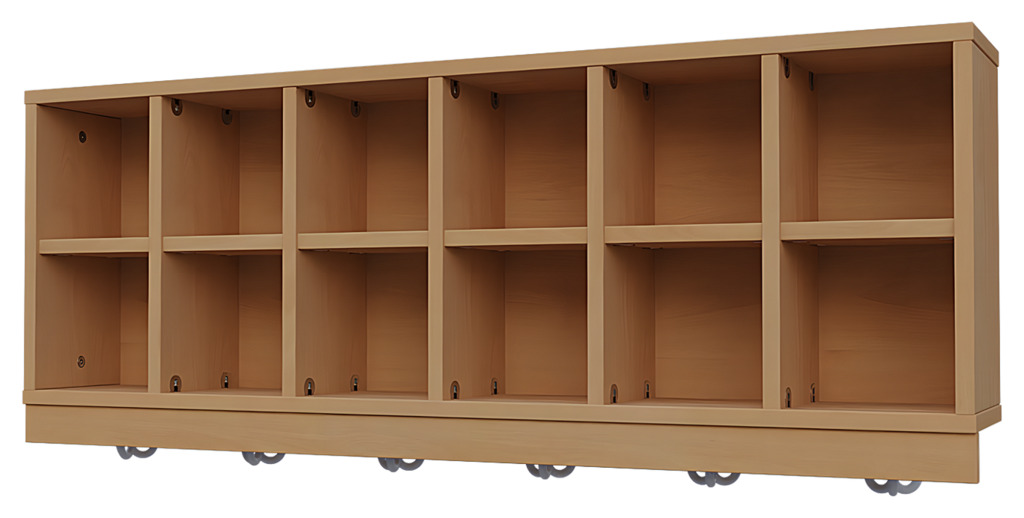 - Die einzelnen Fächer sind waagerecht unterteilt, sodass für jeden Platz ein Doppelfach zur Verfügung steht. Zu jedem Doppelfach gehört ein Dreifachhaken.