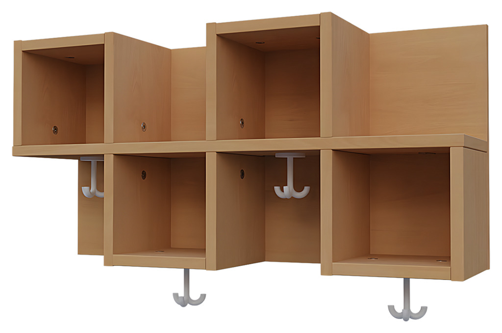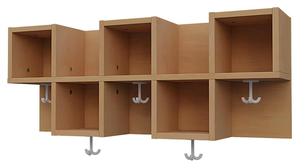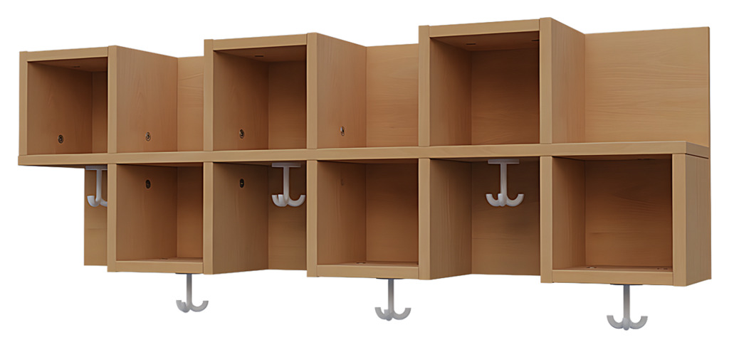 - Zu jedem Fach gehört ein stabiler Dreifachhaken für Jacken, Mäntel oder Taschen