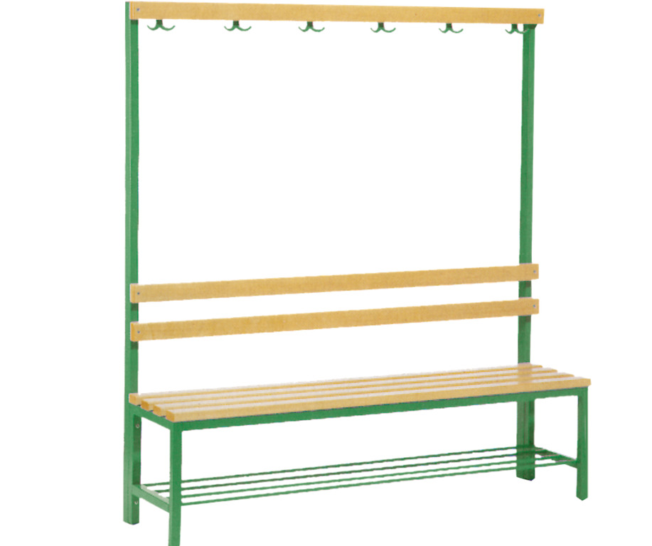 Unsere Umkleidesitzbank mit Garderobe ist perfekt für Ihren Umkleideraum in der Schule oder Sporthalle geeignet. Das vollverschweißte Gestell ist aus Quadratprofilstahlrohr (30x30x2mm).