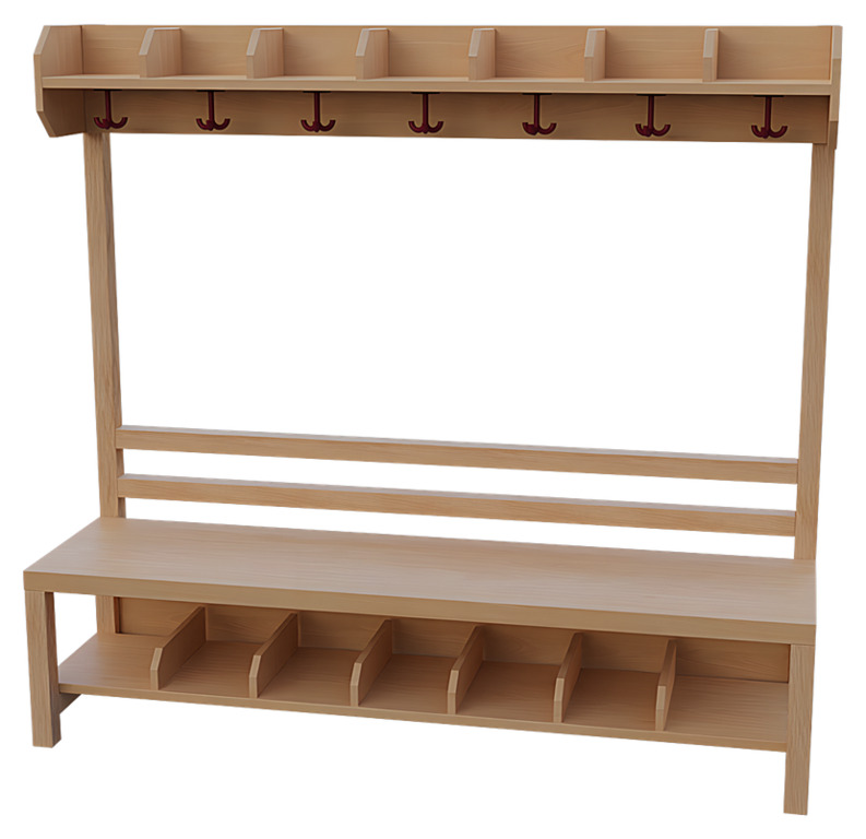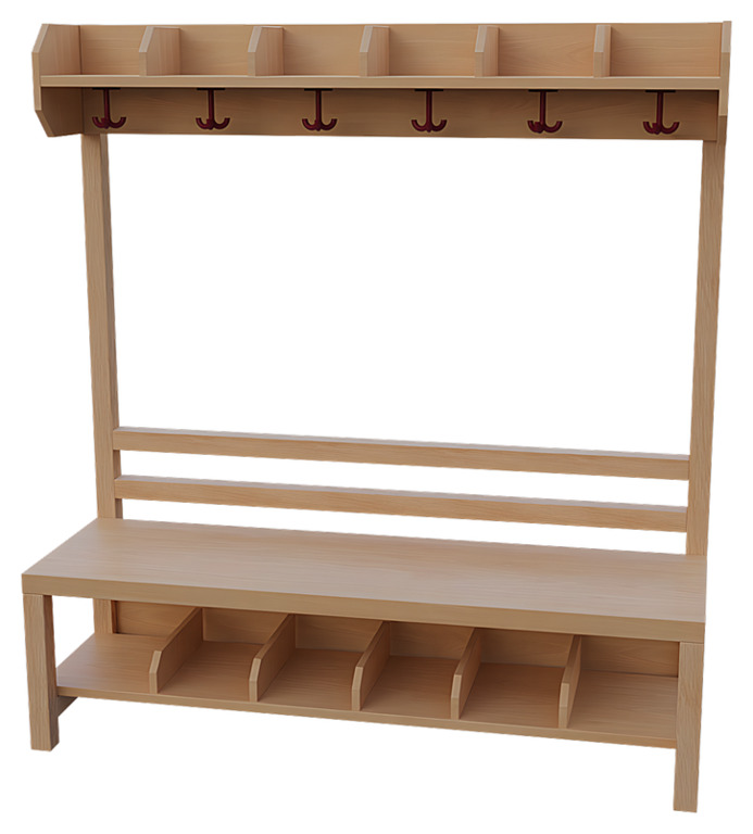 Komplettes Garderoben-Set, bestehend aus 1 Garderobensitzbank mit Ablage, 1 Garderoben-H-Sütze, 1 Garderobenablage mit Unterteilungen und Dreifachhaken - Montage: Sollten Sie die Montage Ihrer Garderobe durch ein fachkundiges Montageteam wünschen, wenden Sie sich bitte an uns, damit wir Ihnen das entsprechende Angebot unterbreiten können.