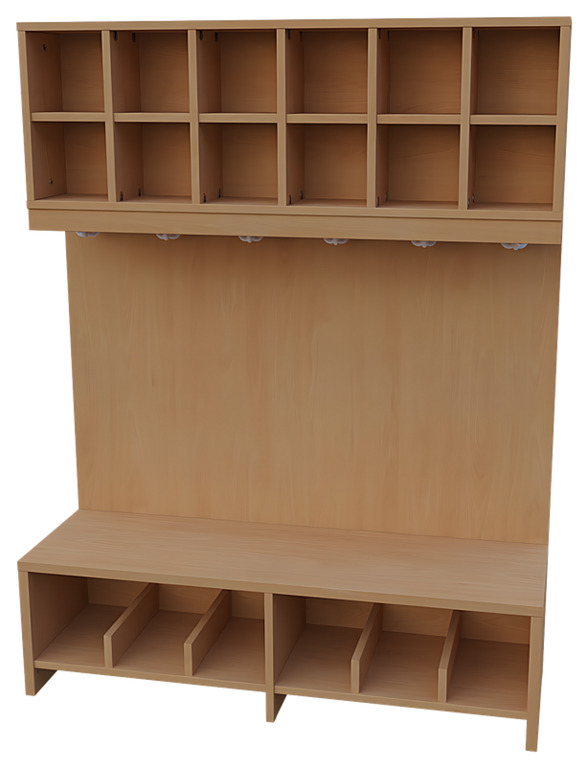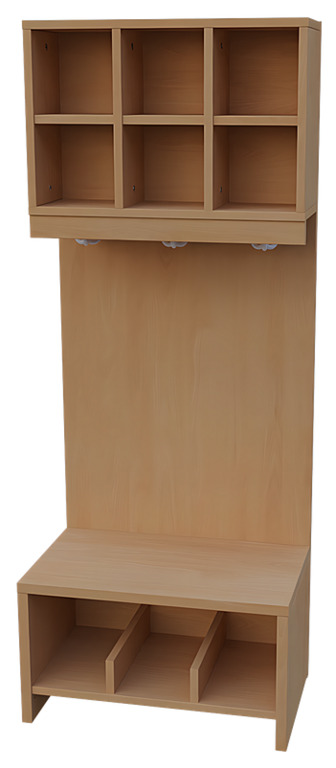 Komplettes Garderoben-Set, bestehend aus 1 Garderobensitzbank mit Ablage, 1 Garderoben-Paneel als Rückwand, 1 Garderobenablage mit Doppelfächern und Dreifachhaken - Montage: Sollten Sie die Montage Ihrer Garderobe durch ein fachkundiges Montageteam wünschen, wenden Sie sich bitte an uns, damit wir Ihnen das entsprechende Angebot unterbreiten können.