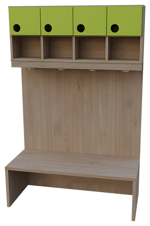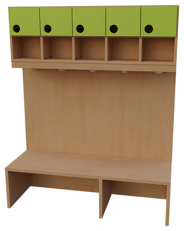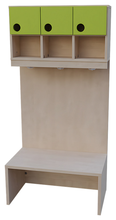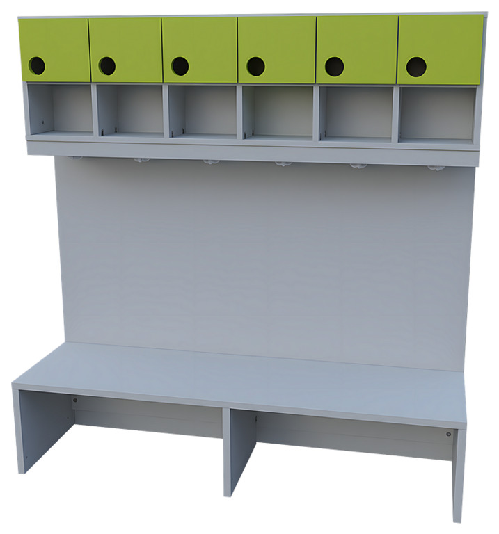 Das Garderobensystem "Modern-Line" beinhaltet verschiedene Bänke, Ablagen und Paneele zum Erstellen von individuellen Garderobeneinrichtungen. Die Türen der Garderobenablage und der Garderobenschränke sind in verschiedenen Farben wählbar, sodass ein individuelles und fröhliches Farbkonzept realisiert werden kann. Mit Garderobenbänken und Ablagen für Innenecken ist es auch problemlos möglich, die Garderobenanlage über eine Ecke fortzuführen. Schließlich gibt es auch noch komplette Garderoben-Sets "Modern-Line" in verschiedenen Variationen.