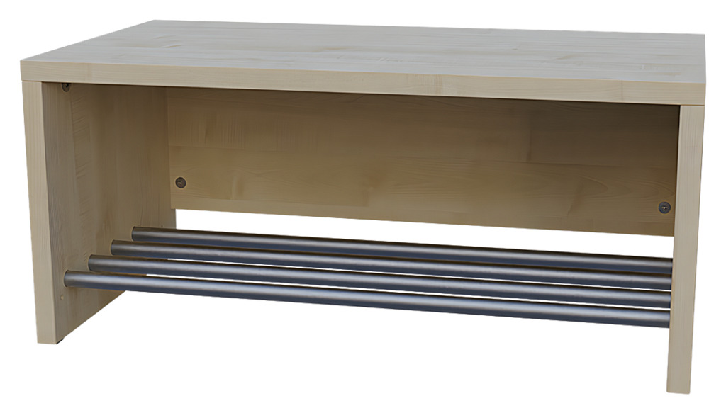 - Garderobenbank als Sitzbank mit Aluminiumrost zum Abstellen von Schuhen