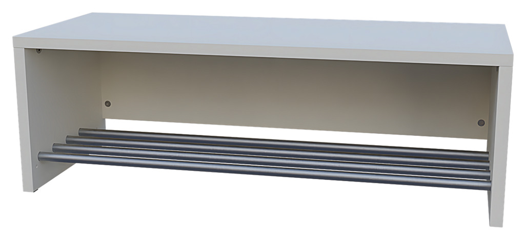 Die Garderobensitzbank "Modern-Line" mit geschlossenen Seiten und Aluminium-Schuhrost ist robust und in 5 Breiten erhältlich.
