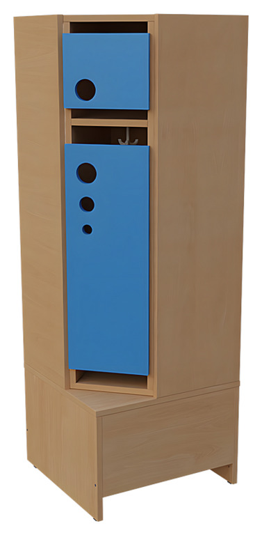 Das Garderobensystem "Modern-Line" beinhaltet verschiedene Bänke, Ablagen und Paneele zum Erstellen von individuellen Garderobeneinrichtungen. Die Türen der Garderobenablage und der Garderobenschränke sind in verschiedenen Farben wählbar, sodass ein individuelles und fröhliches Farbkonzept realisiert werden kann. Mit Garderobenbänken und Ablagen für Innenecken ist es auch problemlos möglich, die Garderobenanlage über eine Ecke fortzuführen. Schließlich gibt es auch noch komplette Garderoben-Sets "Modern-Line" in verschiedenen Variationen.