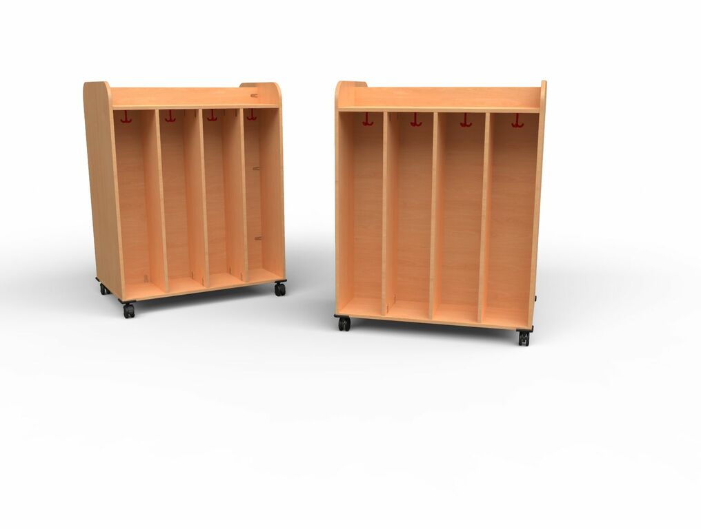 Der Garderobenwagen bietet eine praktische Lösung zur Organisation von Kleidung in verschiedenen Umgebungen wie Schulen, Kindergärten oder Umkleideräumen. Mit insgesamt 8 Abteilen, die jeweils mit einem 3-fach Kunststoffhaken ausgestattet sind, ermöglicht er eine geordnete Aufbewahrung von Jacken, Mänteln oder anderen persönlichen Gegenständen. Die 4 Rollen, von denen 2 feststellbar sind, gewährleisten eine einfache Mobilität und gleichzeitig eine stabile Positionierung des Wagens. Diese robuste und funktionale Konstruktion macht den Garderobenwagen zu einer praktischen Ergänzung für jeden Raum, in dem Kleidung aufbewahrt und organisiert werden muss.