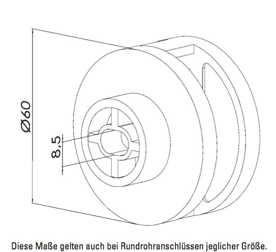 Mit einer Befestigungsschraube M8 x 20 mm durch das Anschlußstück, ist die Klemme am Pfosten drehbar.