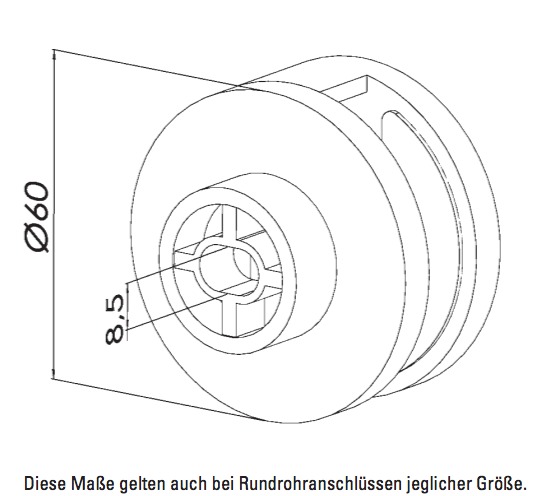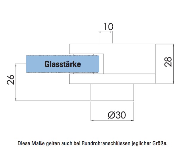 | V2A V4A | Ø 60 mm | flach 42,4 48,3 | Blech ESG- Glas VSG-Glas | ohne |