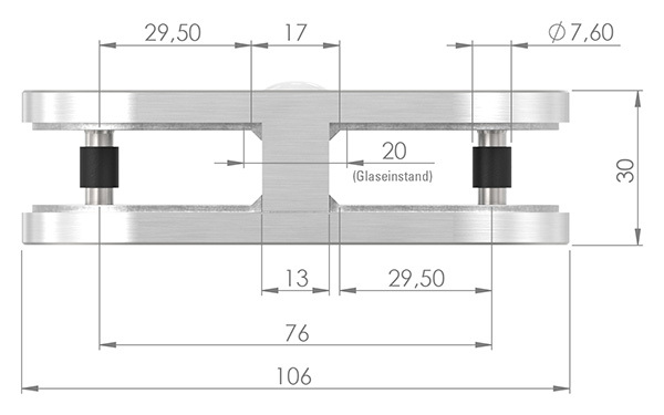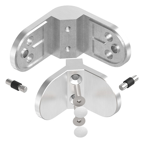 Glasverbinder 180′ nur in V4A erhältich. Mit zwei Klemmschrauben M6.