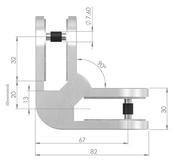 | V4A | 82 x 45 x 30 mm 106 x 45 x 30 mm | 90′ 180° | Blech ESG- Glas VSG-Glas | mit |