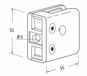 | V2A V4A Zinkdruckguss Edelstahleffekt V4A hochglanzpoliert | 45 x 45 x26 mm | flach 33,7 42,4 48,3 60,3 | Blech ESG- Glas VSG-Glas | mit |