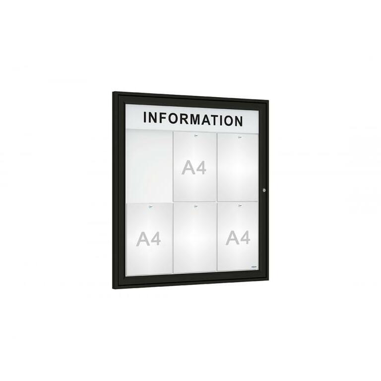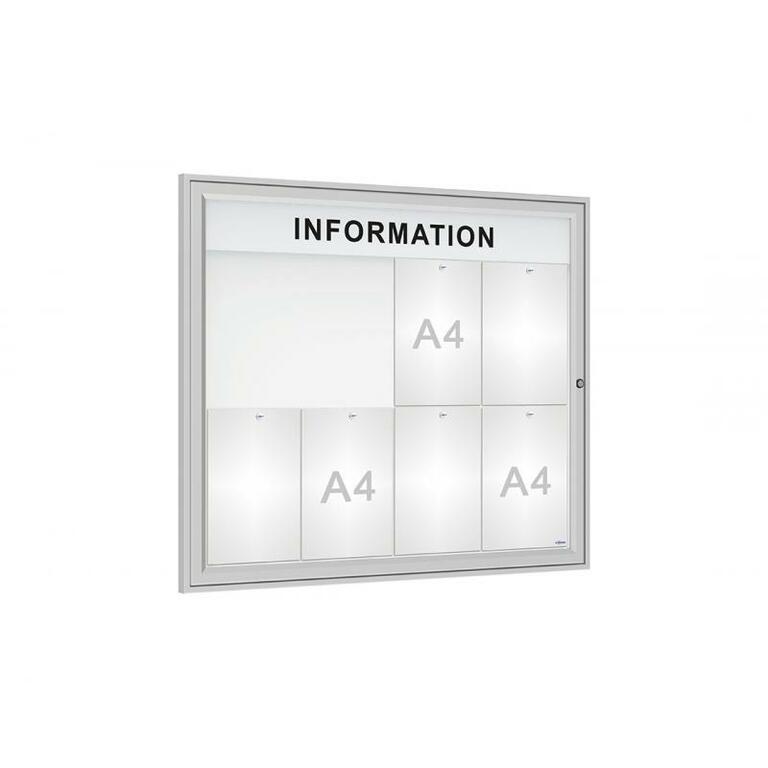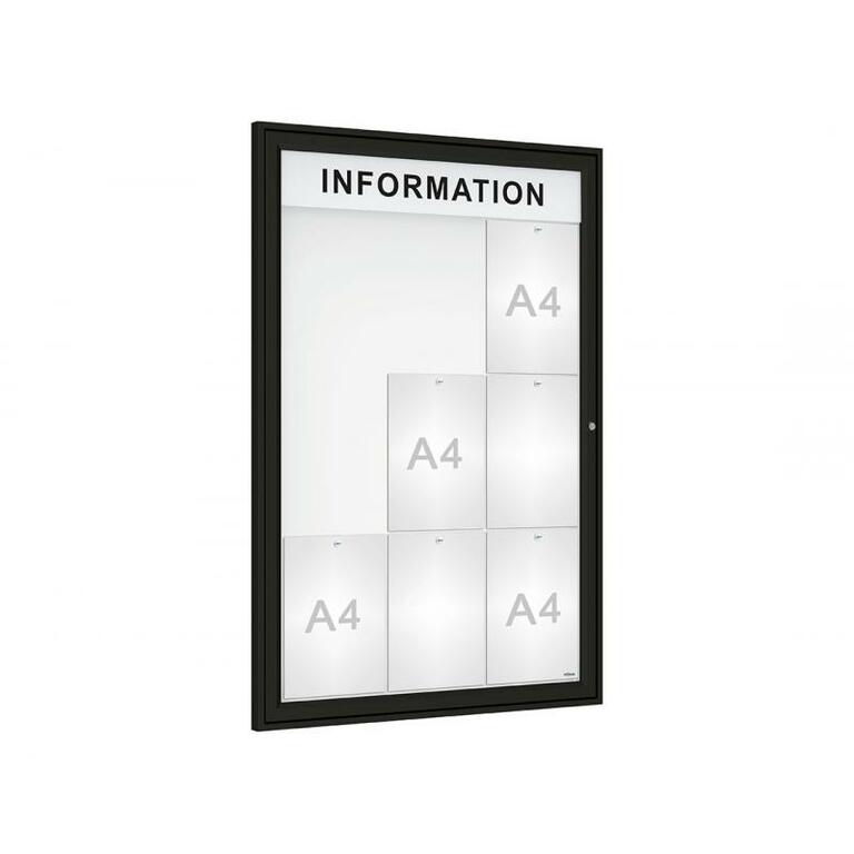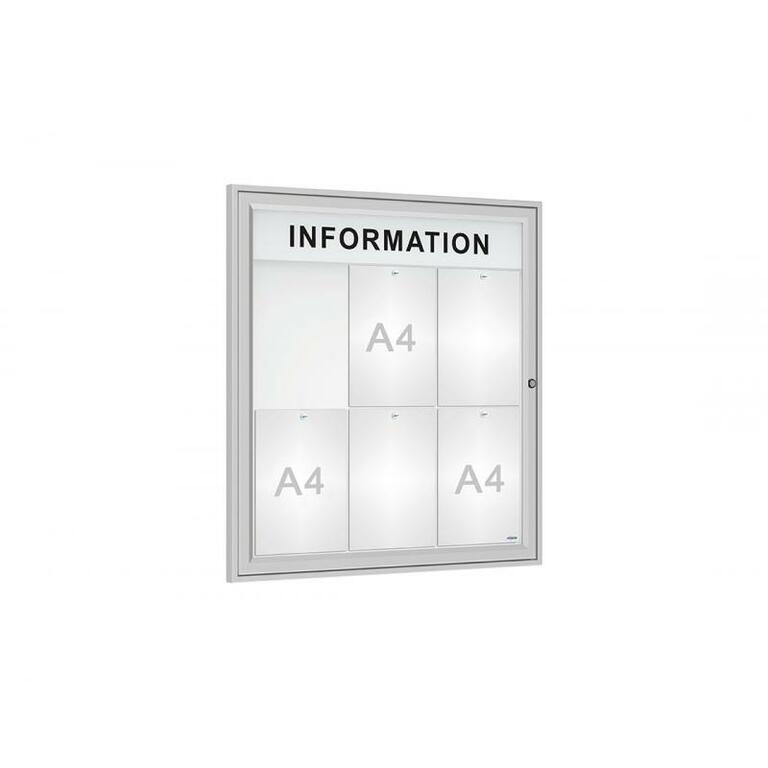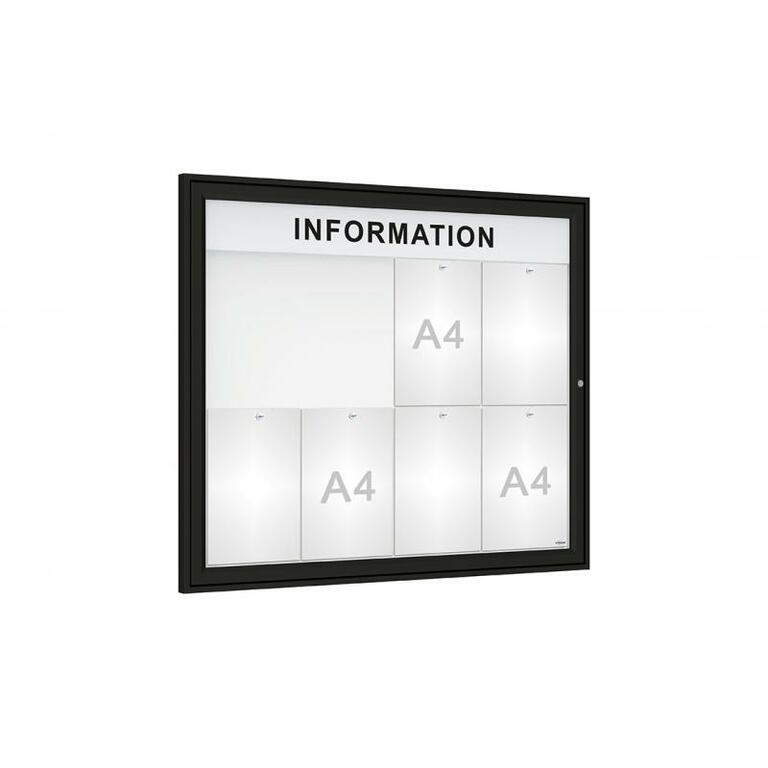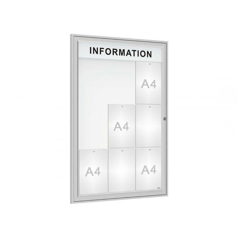 - Version mit innen angebrachter Textblende „INFORMATION“: Selbsthaftende Blende, Höhe 70 mm, werkseitig verklebt.