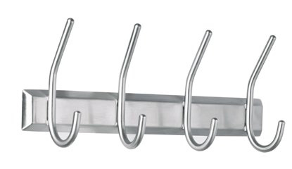Garderobenleiste zur Wandmontage, stabile Ausführung, mit 4 Haken, Edelstahl gebürstet.