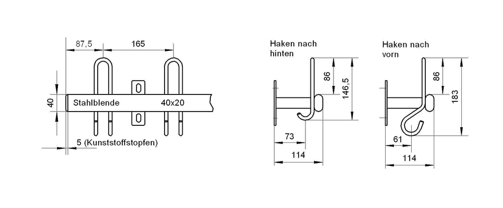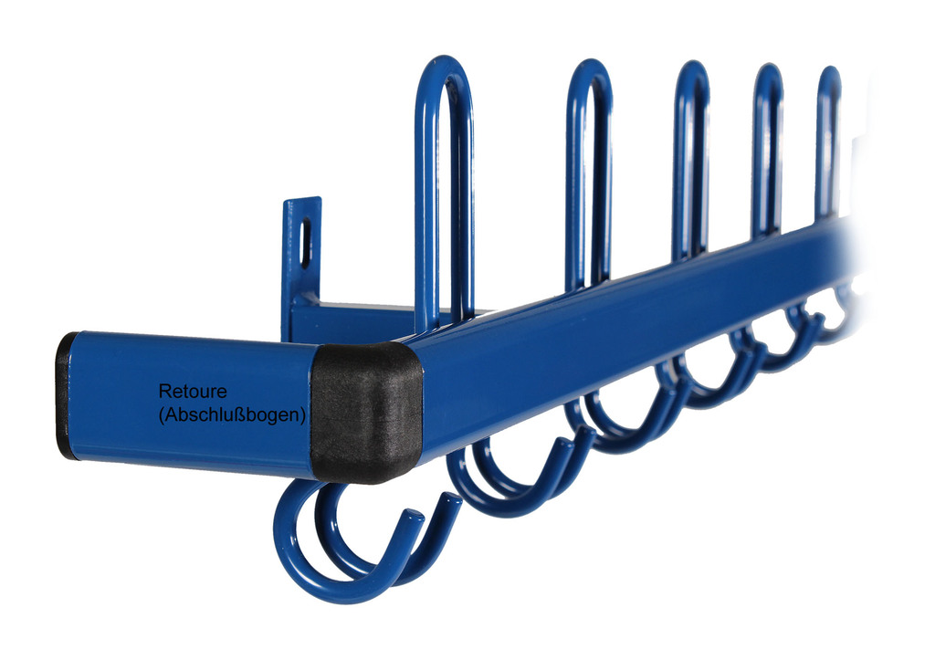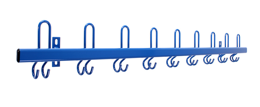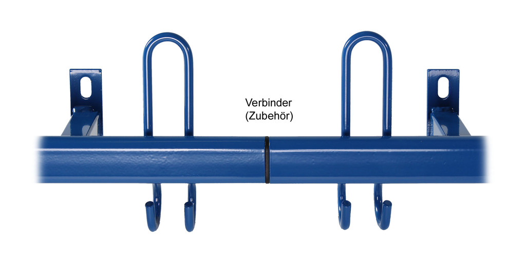 Beide Hakenvarianten sind GS-geprüft. Hakenleisten mit einer Länge über 2 m werden durch Aneinanderreihen der entsprechenden Hakenleisten mittels Verbinder (bitte hier sperat bestellen) realisiert.