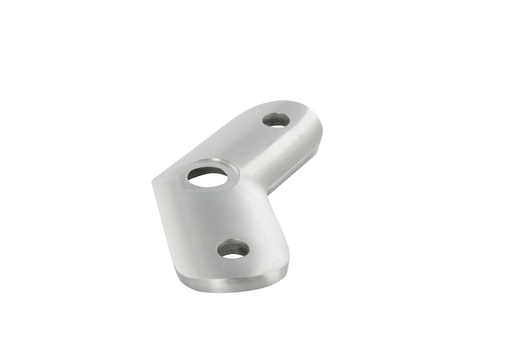 Hochwertige Edelstahl Anschlussplatte im 135° Winkel.