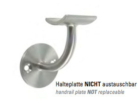 Hochwertiger Handlaufhalter in V2A-Edelstahl. Das Rondenmaß beträgt 60 x 5 mm in flacher Ausführung und hat 2 x 6,5 mm gesenkte Bohrungen. Der Bügel hat einen Durchmesser von 12 mm und ist mit der Ronde aus einem Stück gefertigt. Nach oben ist der Bügel mit einer Halteplatte für einen Rohrdurchmesser von 42,4 mm ausgestattet. Der Wandabstand bis Mitte-Bügel beträgt 68 mm.